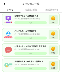 たとえば、『マニュアル動画を視聴する』『ハンドルネームを登録する』などお仕事をする際に必要ことをするだけでOK!
